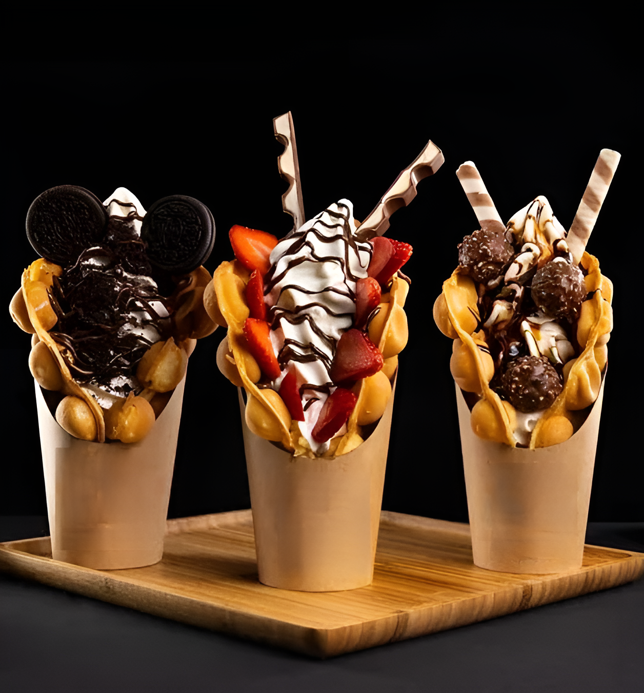 In unserem Eiscafé Al Attar bieten wir Ihnen jetzt auch köstliche Bubble Waffeln an. Diese trendigen Waffeln, die außen knusprig und innen weich sind, werden frisch zubereitet und können mit einer Vielzahl von Toppings und Füllungen nach Ihrem Geschmack verfeinert werden. Ob mit frischen Früchten, Schokoladensauce oder einer Kugel unseres hausgemachten DDR Softeises – unsere Bubble Waffeln sind ein Genuss für alle Sinne. Kommen Sie vorbei und probieren Sie diese leckere Spezialität!